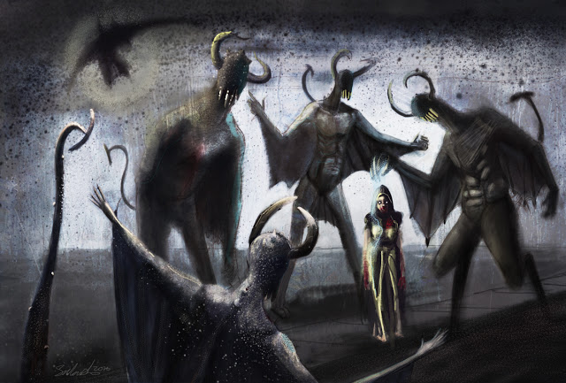 Sombras sin rostro, cada vez más opacas y con distintos rasgos, garras,
